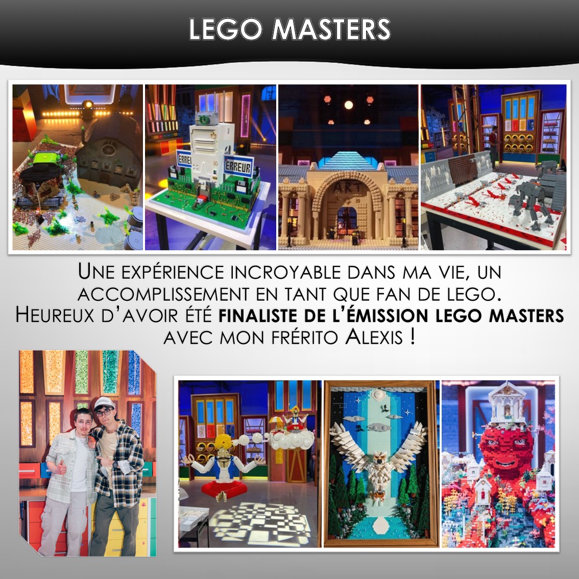 Je m’appelle Aurélien Varichon, ingénieur grenoblois de 32 ans, mais dans le monde des fans de LEGO®, on me connaît surtout sous le pseudo de Legonoblois. Passionné par les célèbres briques danoises depuis l’enfance, je mets aujourd’hui ma créativité et mon sens de la technique au service de constructions originales et de projets qui font rêver petits et grands.
